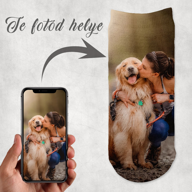 Egyik legkeresettebb termékünk ez a fényképes zokni! Garantált lesz az öröm! Töltsd fel a képed és mi elkészítjük kedvenc zoknidat!