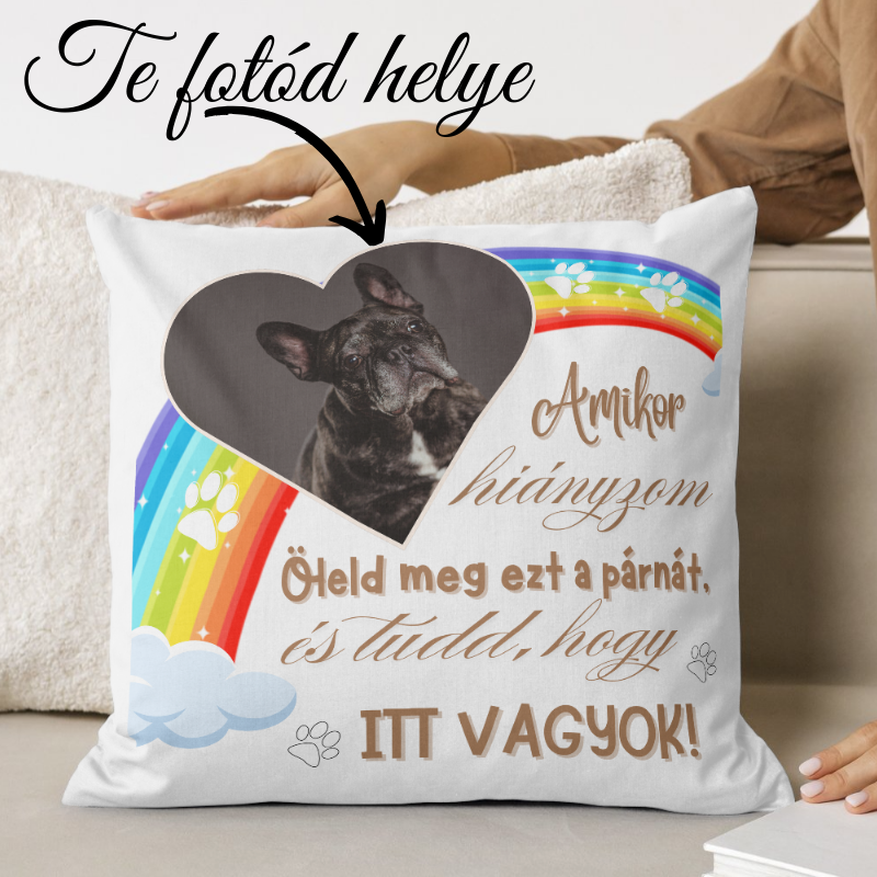 Egyedi emlékpárna, amelyre kedvenced fotója és egy szívhez szóló idézet kerül.