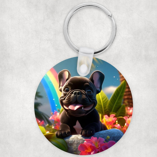 Francia Bulldog kutyás kör kulcstartó - választható mintával