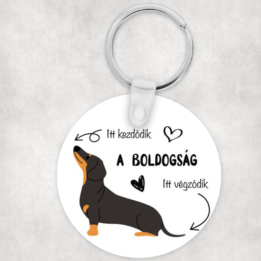 Tacskó kutyás kör kulcstartó - választható mintával