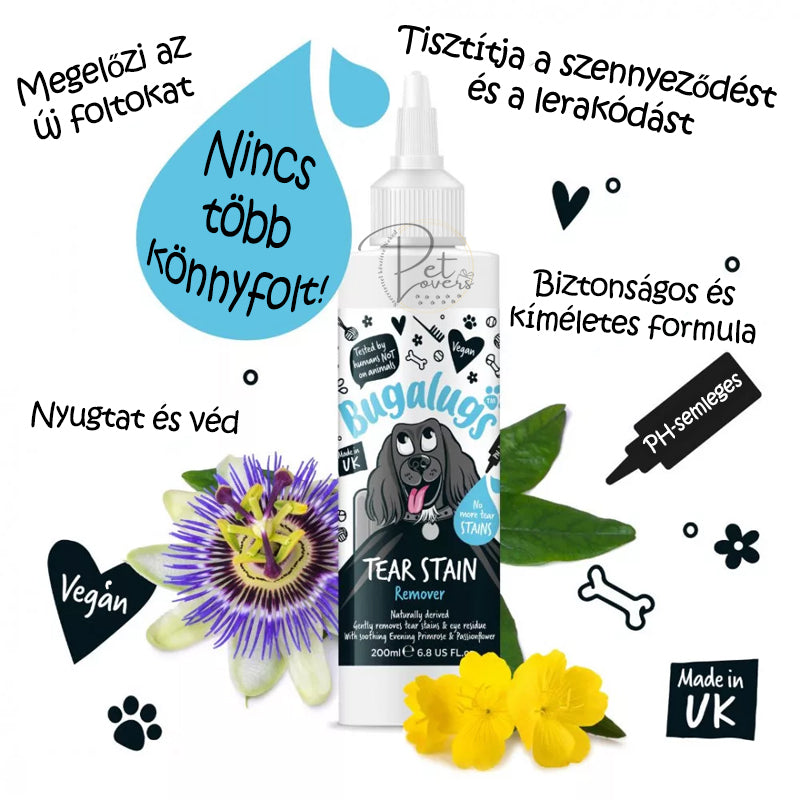 Ezeket a foltokat érdemes minél gyakrabban eltávolítani. A Bugalugs Könnyfolt Eltávolító pontosan ezt a célt szolgálja.
